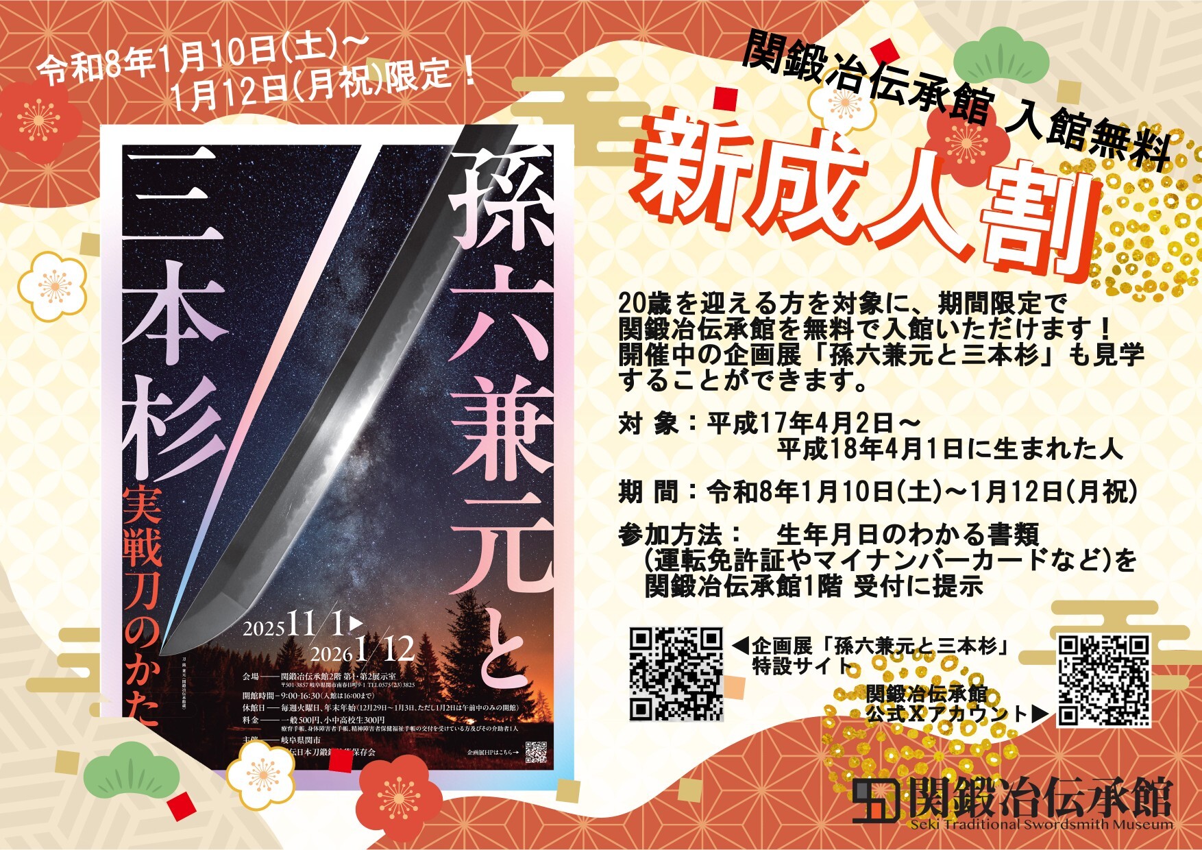 【期間限定】「新成人割」で入館料無料!~刀剣乱舞ONLINEとコラボ企画展 「孫六兼元と三本杉」開催中~