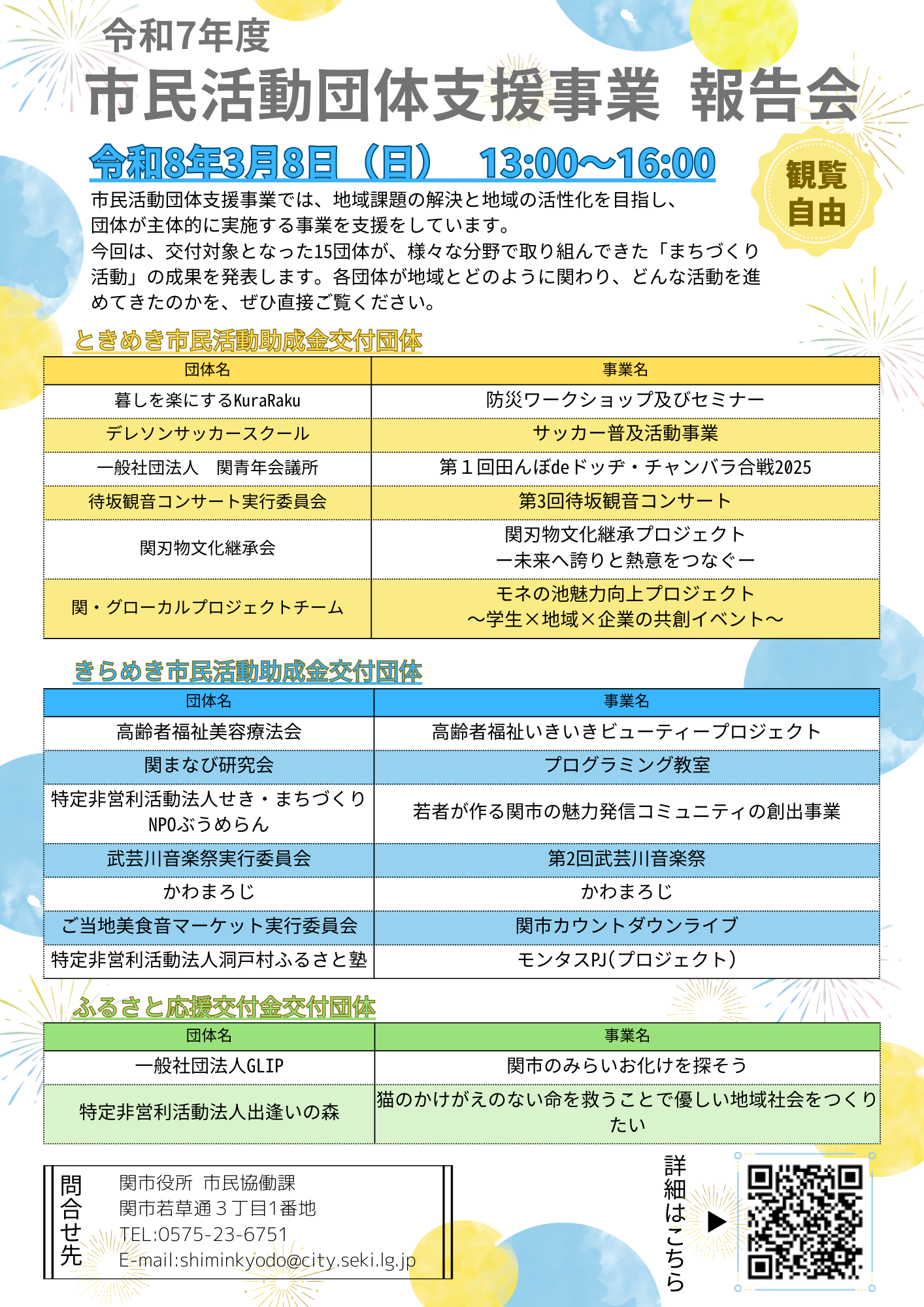きらめき市民活動助成金交付団体(7団体)