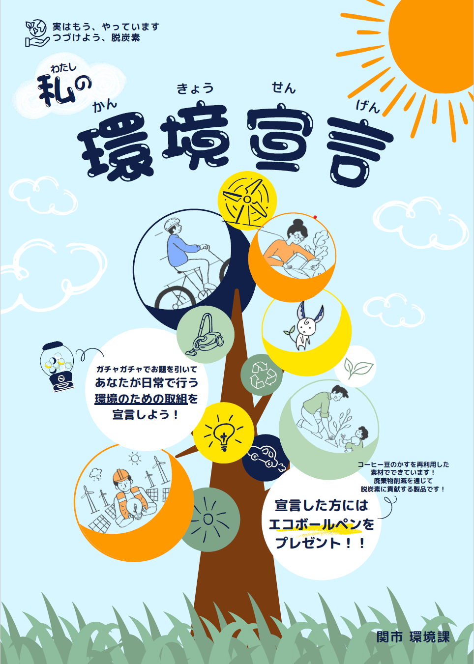 これは、ガチャガチャを回して出たシールに書いてあるテーマに関する「私の環境宣言」を記入するというものです。