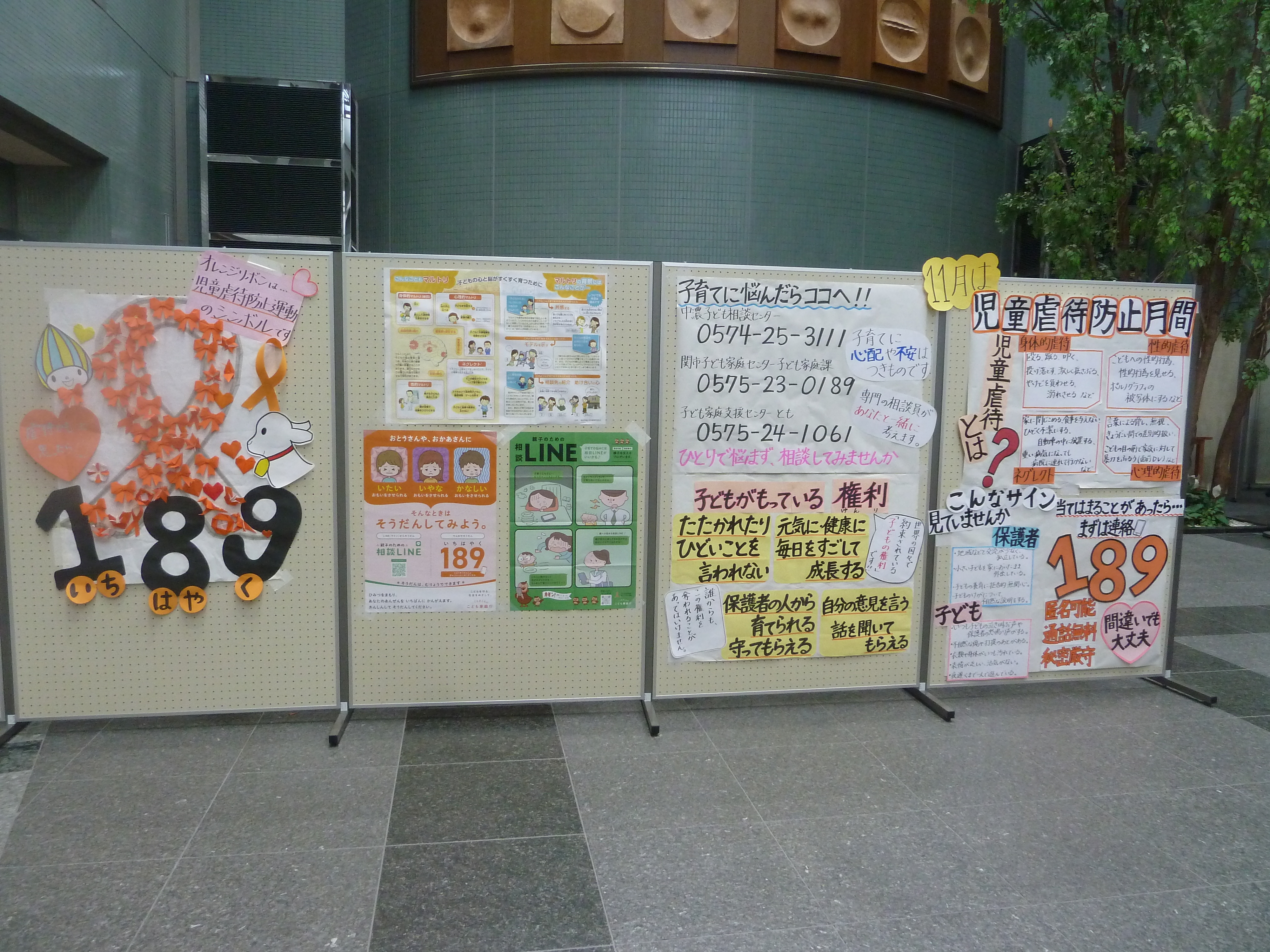 関市役所アトリウムにて児童虐待防止啓発に関する掲示を行っています。