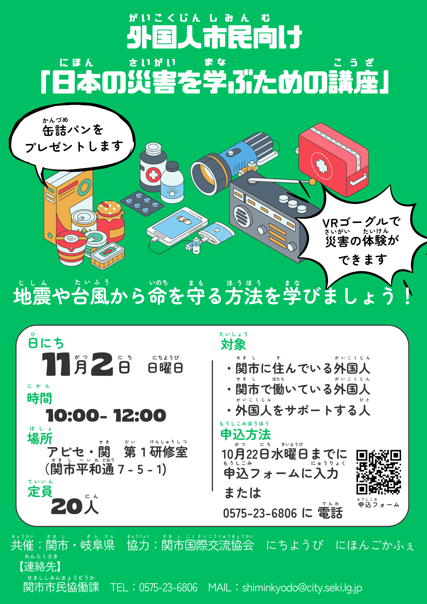 外国人市民向け「日本の災害を学ぶための講座」を開催します!
