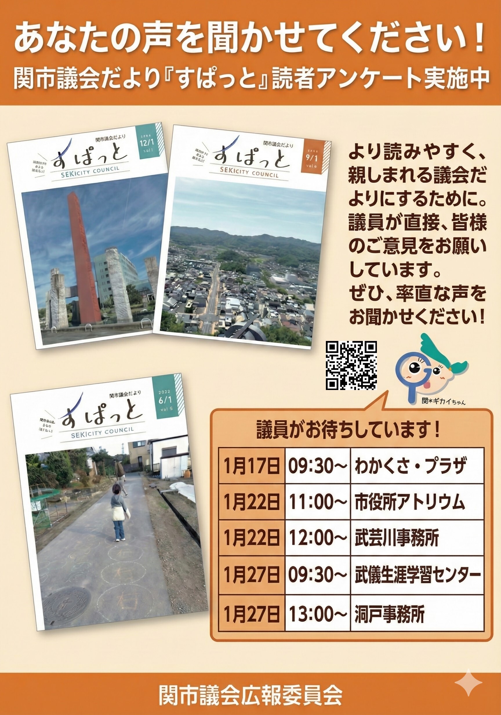 この度、関市議会は、議会だよりの成果検証と今後の改善のためアンケートを実施します。